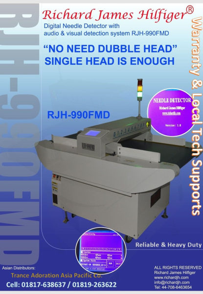 Its advanced design & detection technology ensures the ferrous free lothings, garments , shoes & baby items.